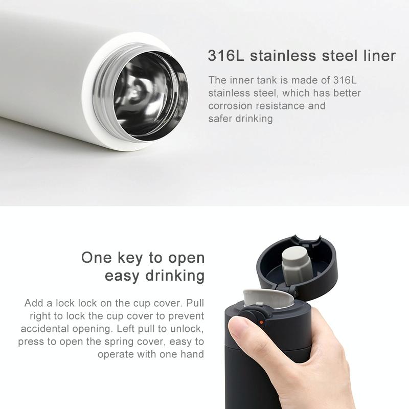 5. Add a lock to the lid, dial right to lock the lid to prevent accidental opening, dial left to unlock, lightly press to open the pop lid, convenient and free one-handed operation