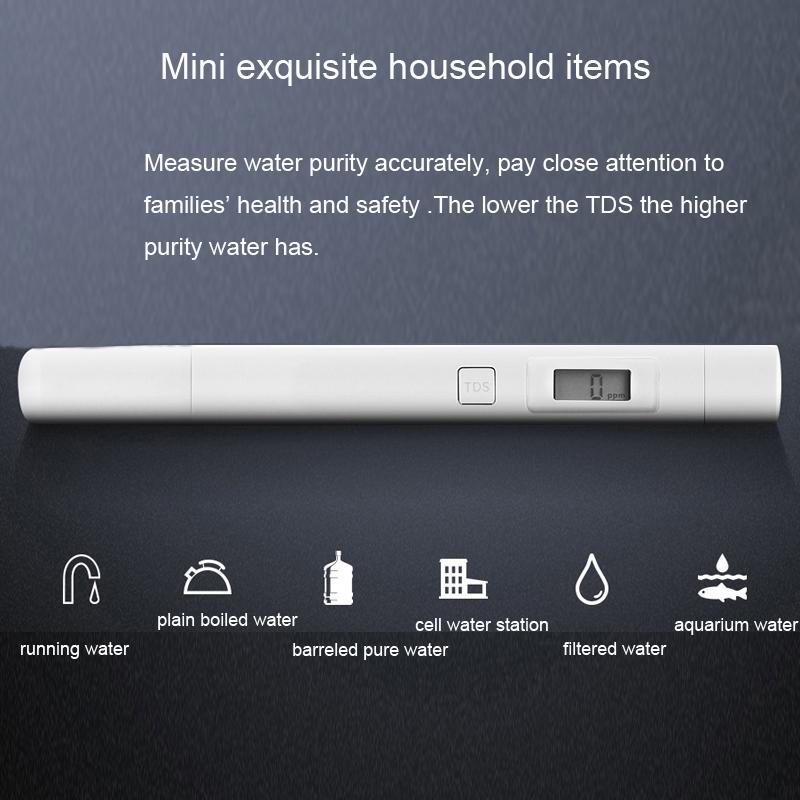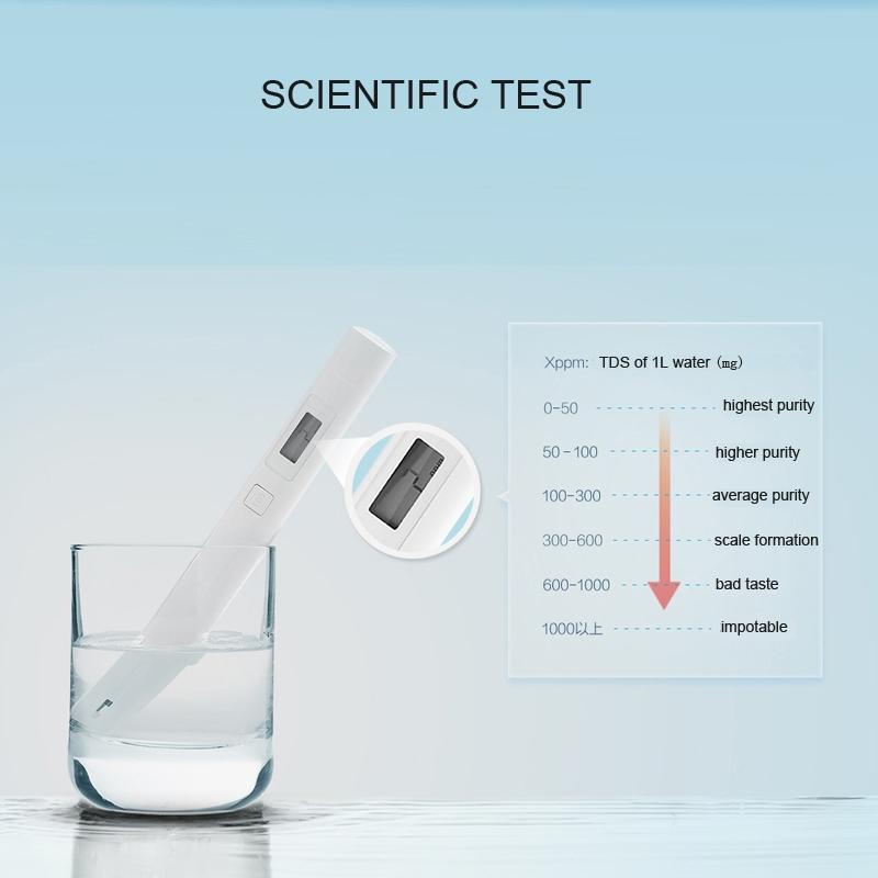 1. Easy-to-use. Just put the test pen into the water you want to test and press the button, then the TDS(total dissolved solids) of water shows on the display.