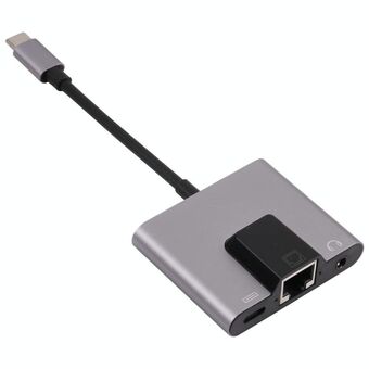 NK-1056TC 3 in 1 USB-C / Type-C Male to USB-C / Type-C Charging + Ethernet + 3.5mm Earphone Female Adapter
