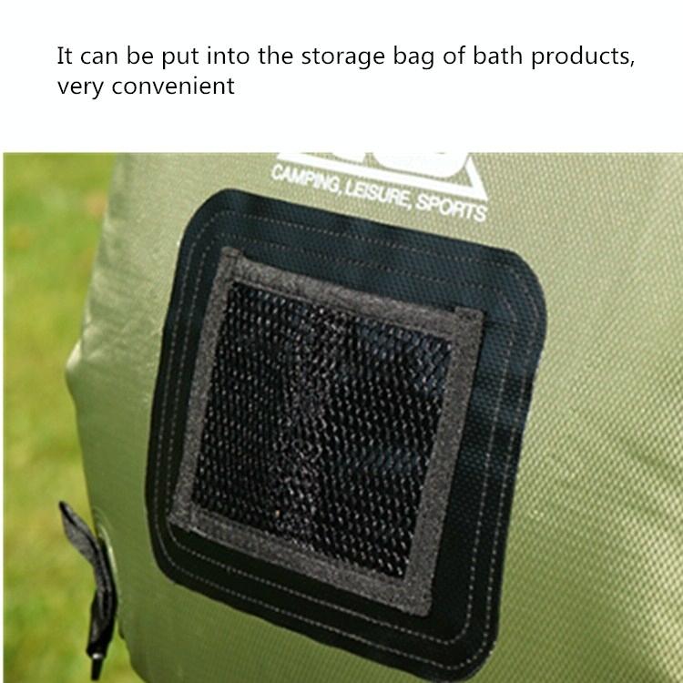 6. After unfolding, it can be hung on a tree branch or a lamp. There is a storage bag on the bathing bag to put bathing supplies. A thermometer is attached to intuitively know the temperature of the water.