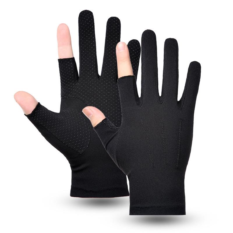 Outdoor Bicycle Riding Fishing Gloves Thin Breathable Anti-UV Sports Ice Silk Gloves, Style: Men 2 Fingers Black