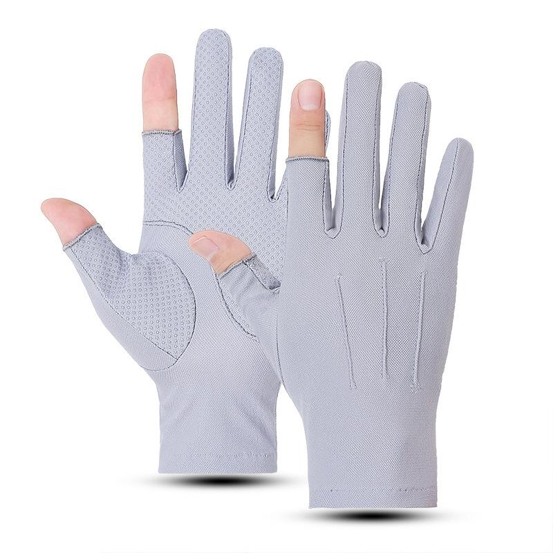 Outdoor Bicycle Riding Fishing Gloves Thin Breathable Anti-UV Sports Ice Silk Gloves, Style: Men 2 Fingers Gray