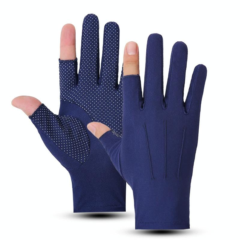 Outdoor Bicycle Riding Fishing Gloves Thin Breathable Anti-UV Sports Ice Silk Gloves, Style: Men 2 Fingers Navy