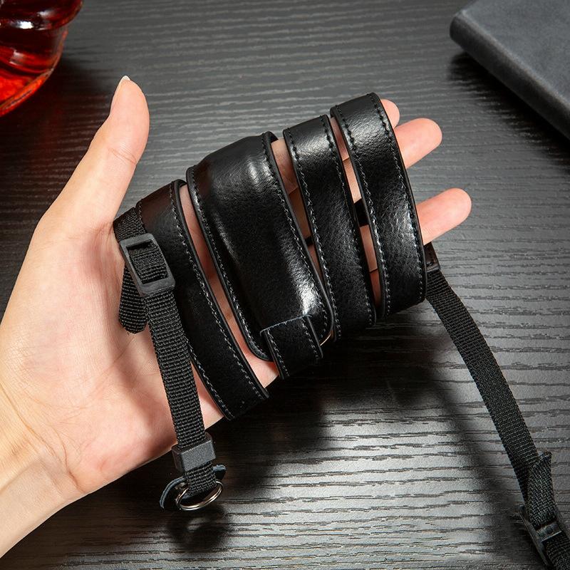 Outdoor Photography Cowhide Leather Camera Shoulder Hanging Neck Winding Strap, Spec: Split Leather (Black)