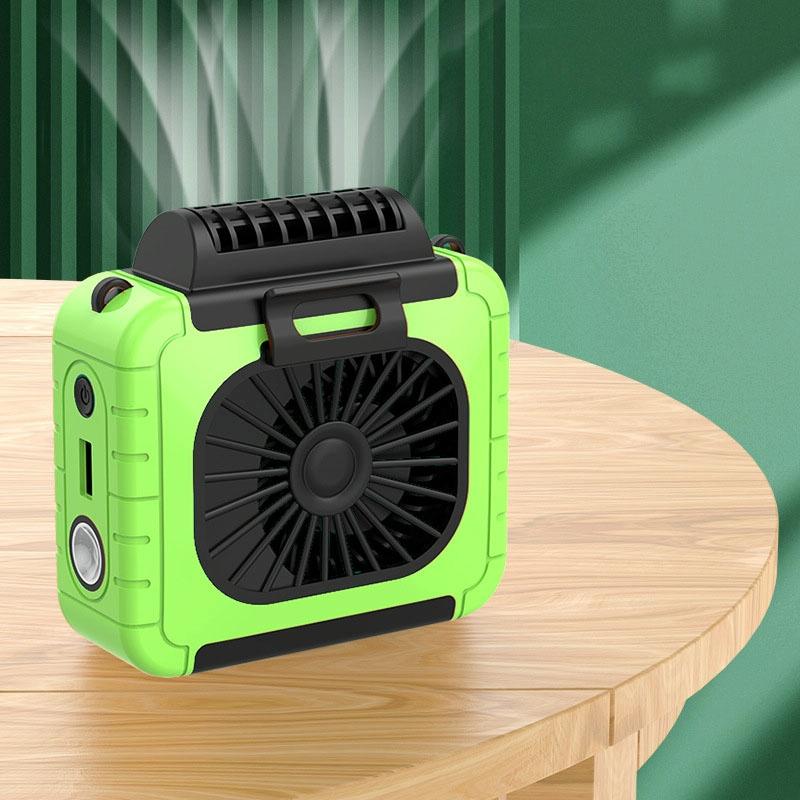 Outdoor Waist-Mounted Lighting Fan Multifunctional Bracket Hanging Neck Fan(Grass Green)