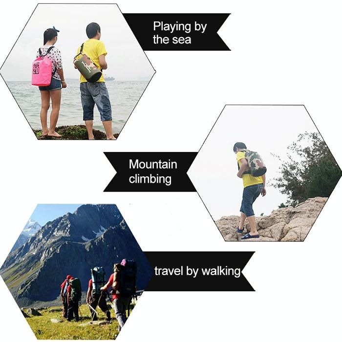 4. This waterproof barrel bag is ideal for river rafting, boating, sailing, swimming, and fishing, hiking, cycling,canoeing,kayaking,camping, etc.
