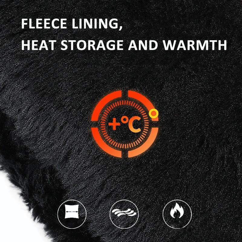 3. Plush lining, moderate thickness, locks in heat and keeps warm