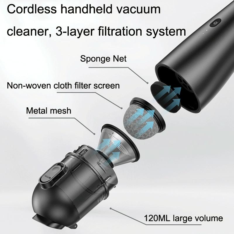 1. Cordless handheld vacuum cleaner, 3-layer filtration system