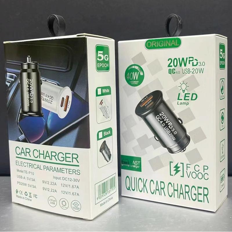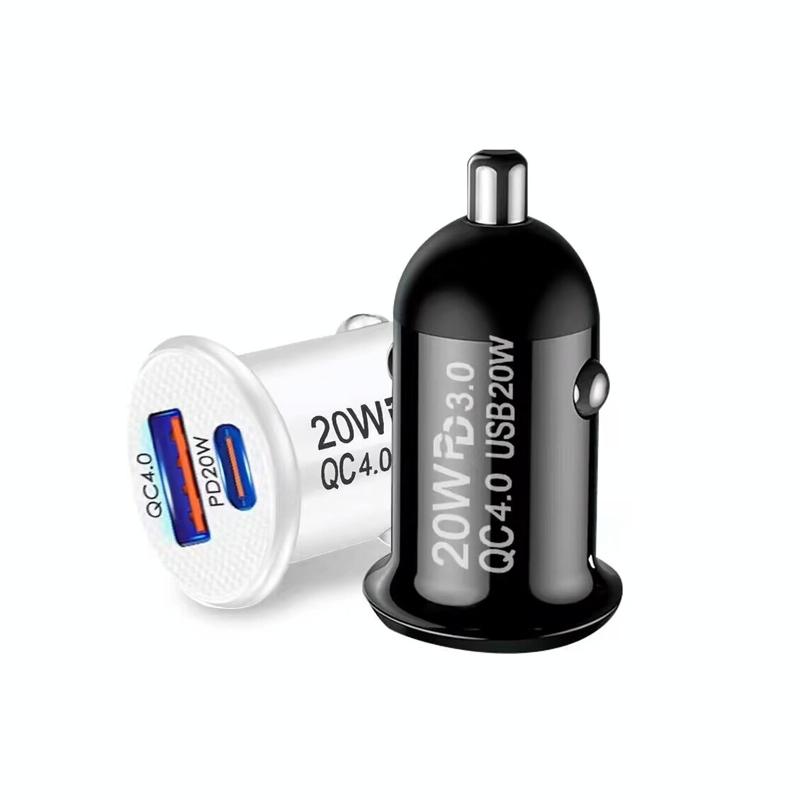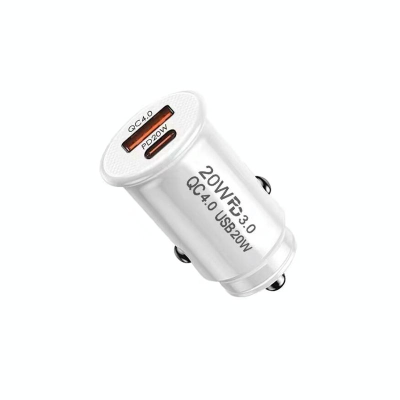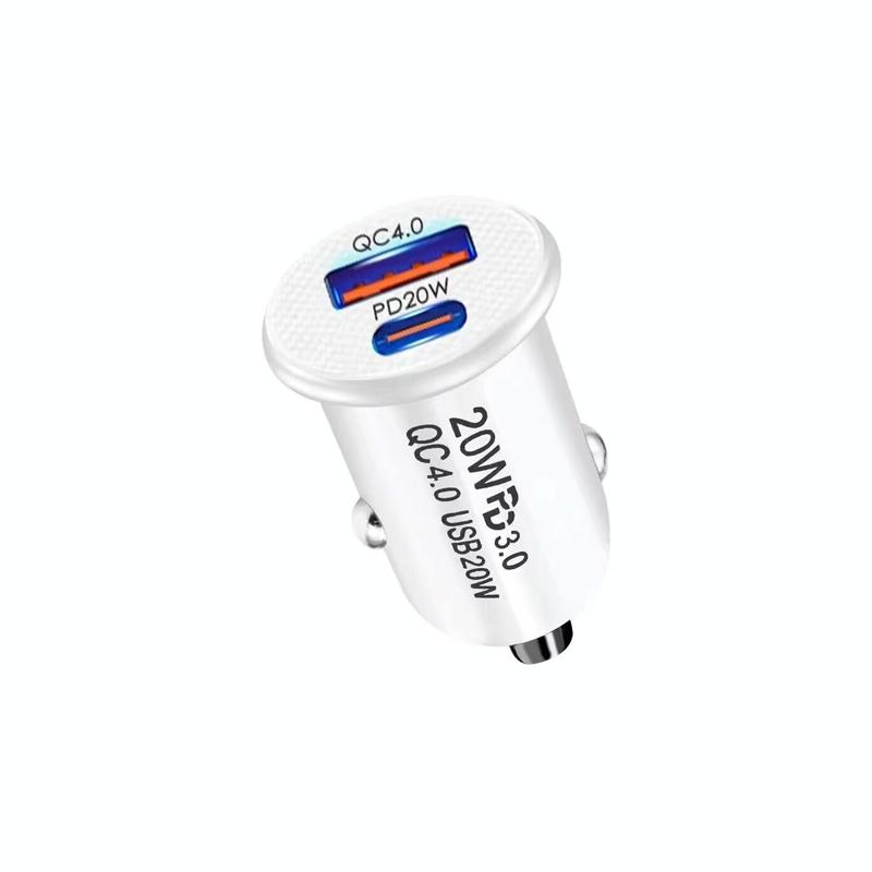 P10 Mini Style QC4.0 USB / PD20W Dual Port Car Charger(White)