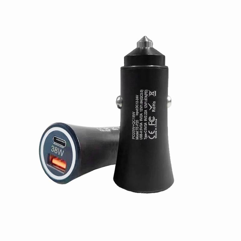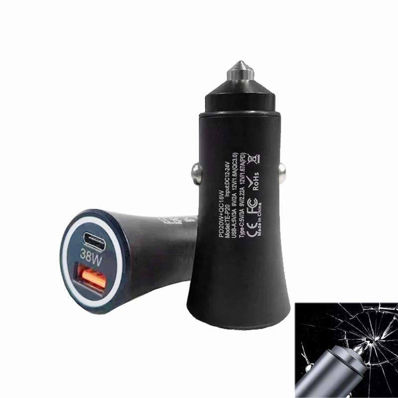 P20 38W PD3.0 20W + QC3.0 USB Safety Hammer Car Charger(Black)