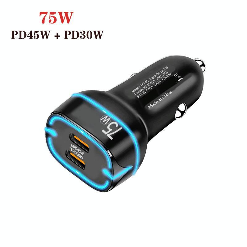 P65 PD45W + PD30W Dual Port Type-C Car Charger for iPhone / iPad Series(Black)
