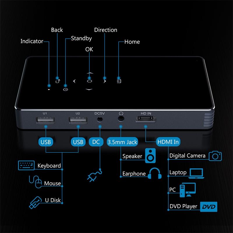 P8I 854x480 100LM Mini Portable Multimedia DLP Projector