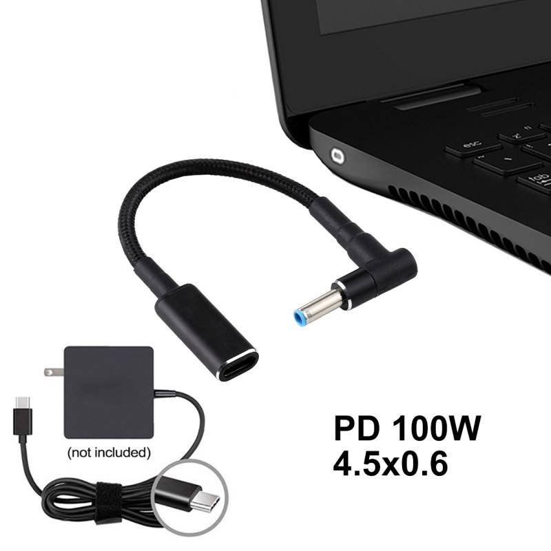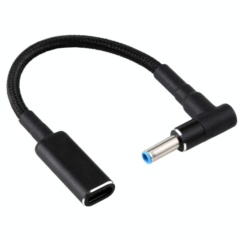 PD 100W 18.5-20V 4.5 x 0.6mm Elbow to USB-C / Type-C Adapter Nylon Braid Cable for HP