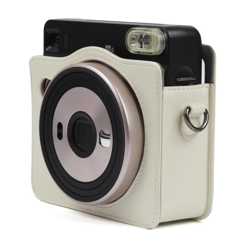 Pearly Lustre PU Leather Case Bag for FUJIFILM Instax SQUARE SQ6 Camera, with Adjustable Shoulder Strap(White)