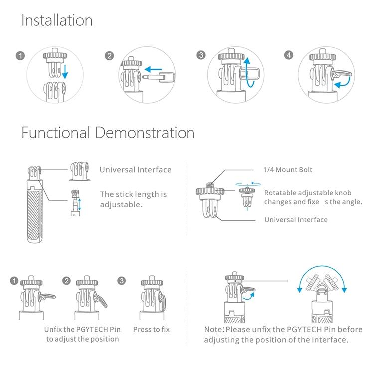 3. The top of the pole is equipped with a sports camera universal interface, and a 1/4 screw adapter is standard, which effectively expands the use of functions.