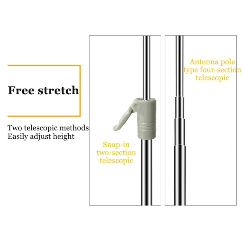 2. Two telescopic modes, snap-on 2-section telescopic/antenna pole-type four-section telescopic, easy to adjust the height