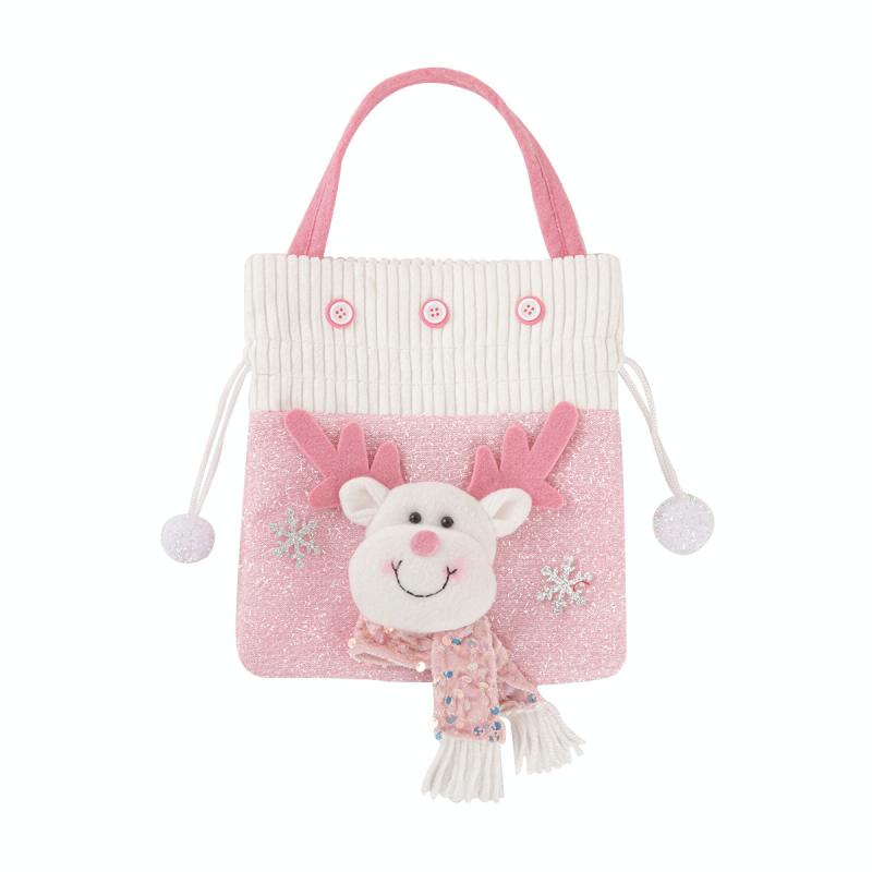 Pink Series Plush Gift Bags for Christmas Presents with Drawstring(Elk)