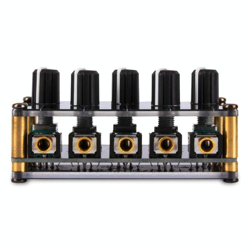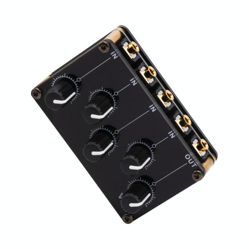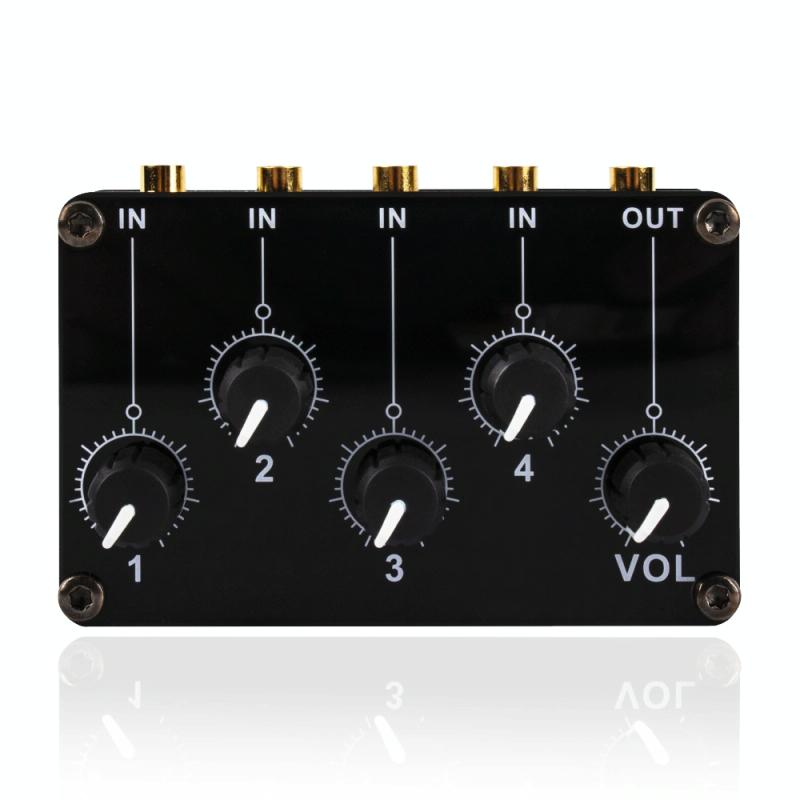 5. 1 main output volume knob and 4 independent input volume knobs, the 4 inputs do not interfere with each other
