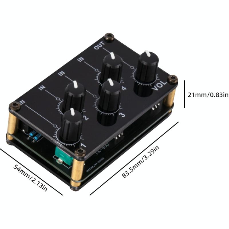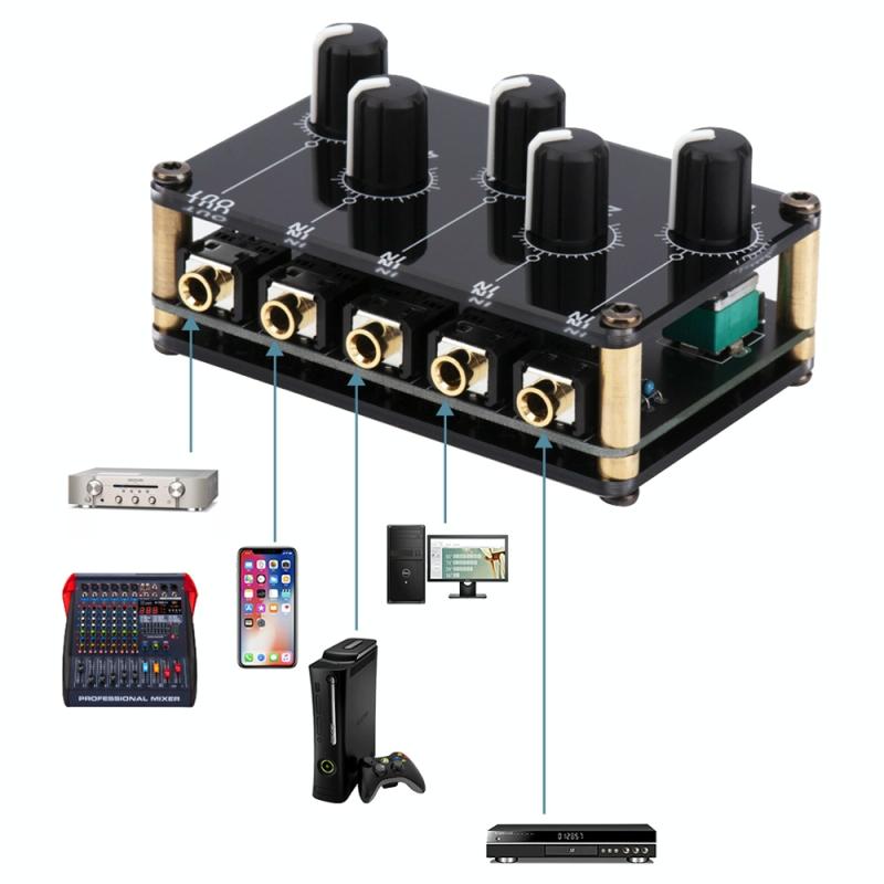 2. Features 4 3.5mm inputs and 1 3.5mm output, capable of mixing signals from CD players, musical instruments, portable recording devices, video playback devices, etc.