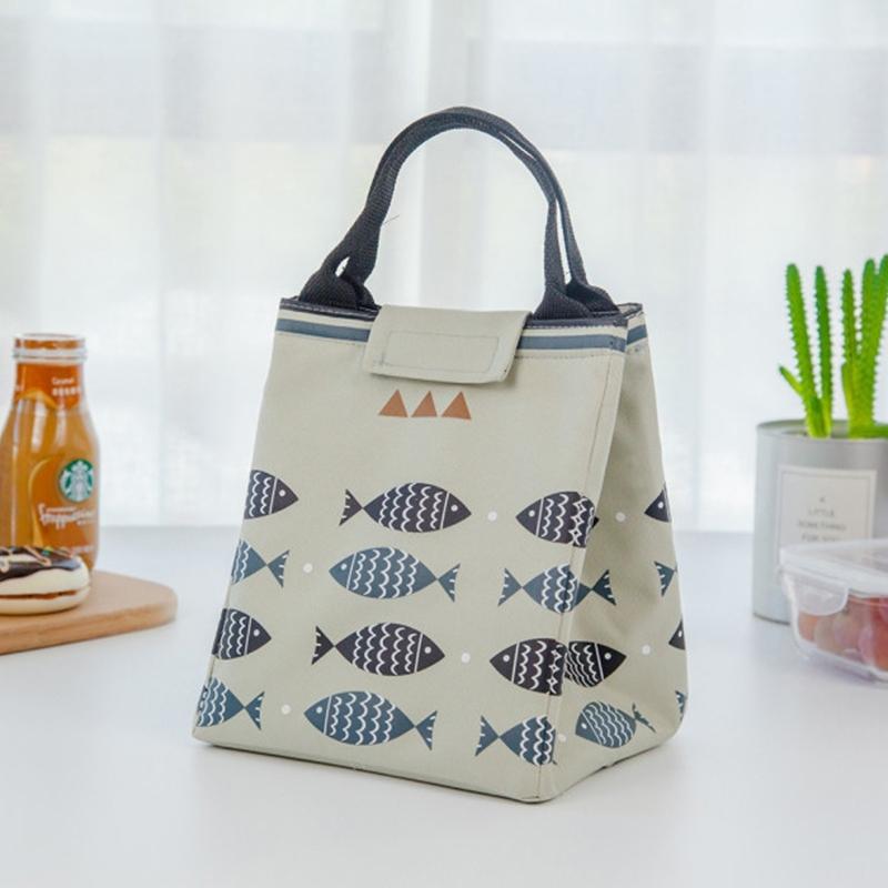 Food Pouch Tote Oxford Cloth Fish Pattern Large Capacity Container Thermal Insulated Cooler Portable Lunch Bag For Women Men Kid