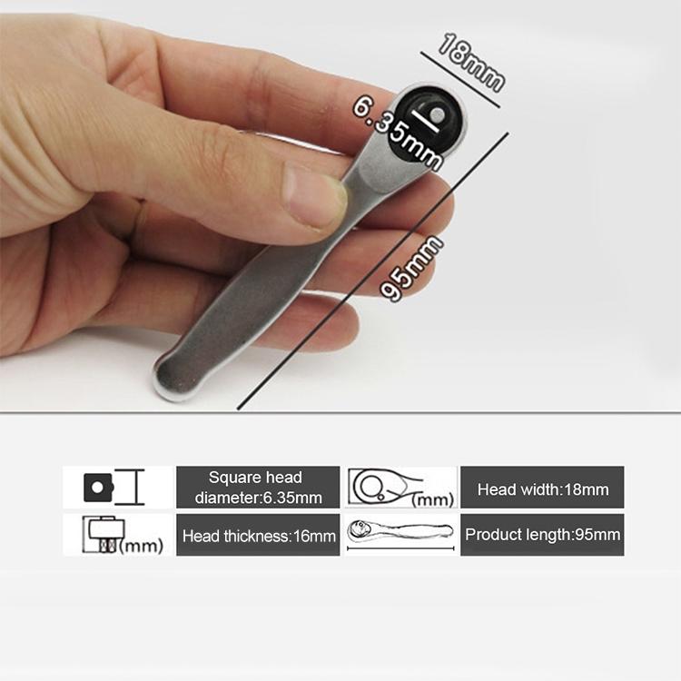 3. Driving square size: 1/4 inch (6.35 mm) on the opposite side, length 95 mm, pinhole depth 11 mm, interface diameter 6.35 mm, head width 18 mm, head thickness 16 mm