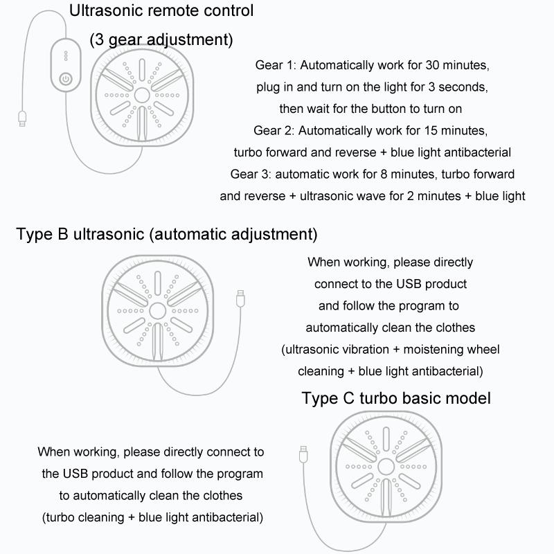 When working, please directly connect to the USB product and follow the program to automatically clean the clothes (turbo cleaning + blue light antibacterial)