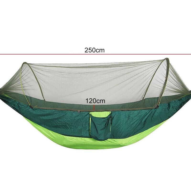 6. Automatic quick-opening hammock: hanging can be automatically opened, mosquito nets and hammock integrated design, no longer need to tie mosquito nets rope and trouble. Dual-use mosquito nets can be turned over to make the cloth face up directly when no mosquito nets are needed. The mosquito nets will cling to the cloth surface of the hammock.