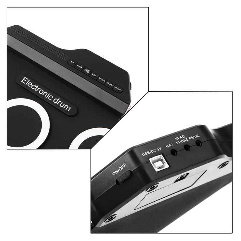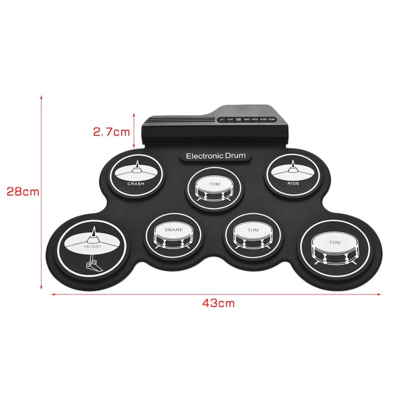 2.With 7 silicon drum pads including Tom/Snare/Hi-Hat/Crash/Ride, making excellent sounds and simulating real beating effect.
