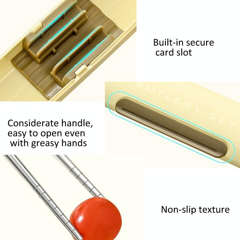 2. Built-in firmly fixed card slot, chopsticks and spoons are not easy to shake and make noise in the box and will not scratch