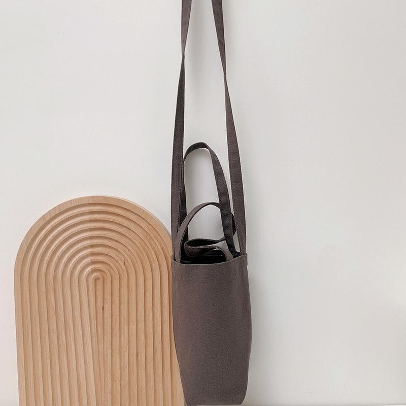Portable Water Cup Coffee Bag Outdoor Thermal Insulation Solid-Color Canvas Cup Cover, Specification: Crossbody (Dark Gray)