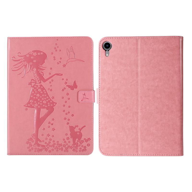 Pressed Printing Woman and Cat Pattern Horizontal Flip Leather Tablet Case For iPad mini 6(Pink)