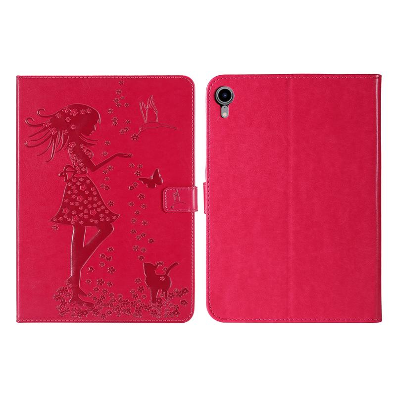 Pressed Printing Woman and Cat Pattern Horizontal Flip Leather Tablet Case For iPad mini 6(Rose Red)