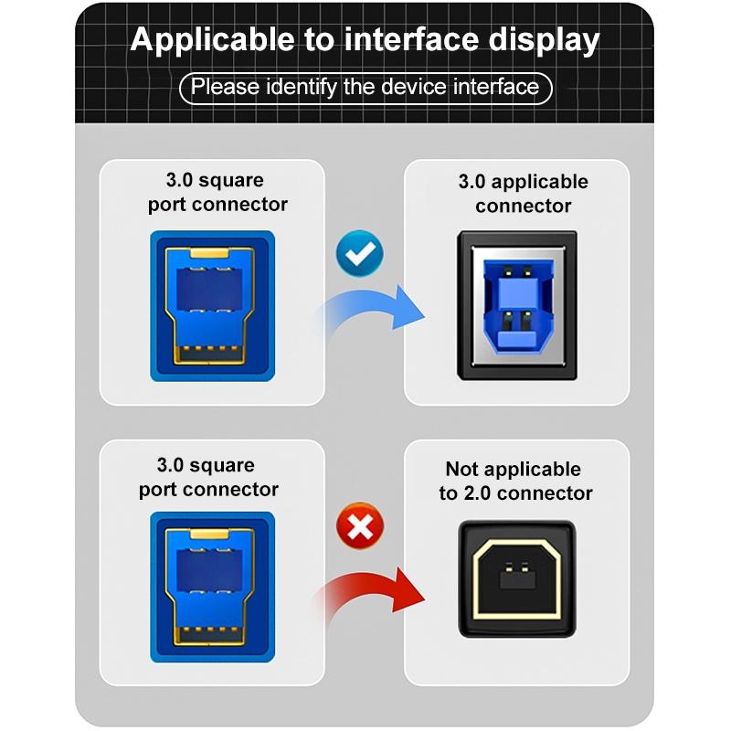 2. Suitable for devices with USB3.0 square interface such as display, printer, hard disk box, camera, etc.