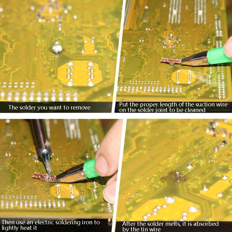 6. Features: stainless steel heat dissipation nozzle design, easy to operate, easy to hold, not hot, fixed-frame take-up turntable, convenient to recycle unused braided copper wire, translucent PP shell, easy to inspect the storage of tin-absorbing braided copper wire volume, braided copper wire, high efficiency absorption of solder, low residue