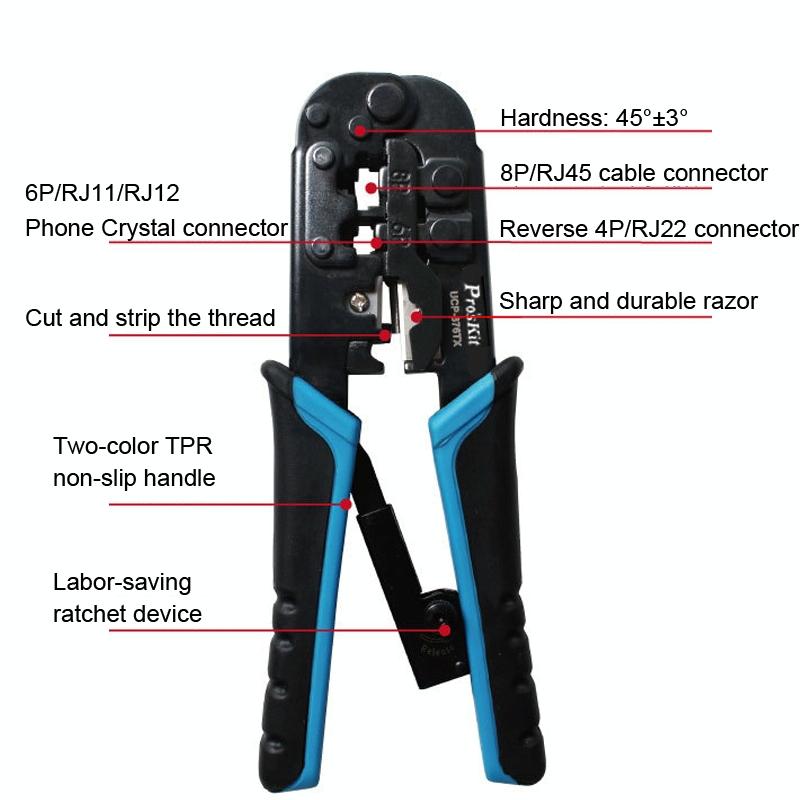 6. Crimp range: 4P2C/4P4C RJ22 telephone handset, 6P2C/6P4C/6P6C RJ11 telephone line, 8PPC RJ45 network cable