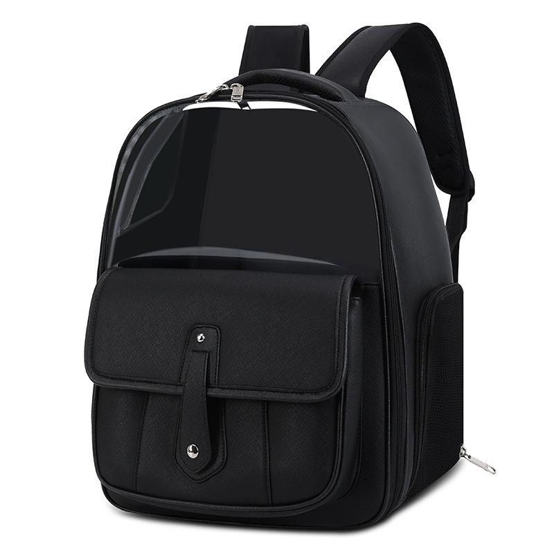 PU Pet Bag Cats And Dogs Outing Carrying Capsule Double Shoulder Backpacks(Model 6 Black)