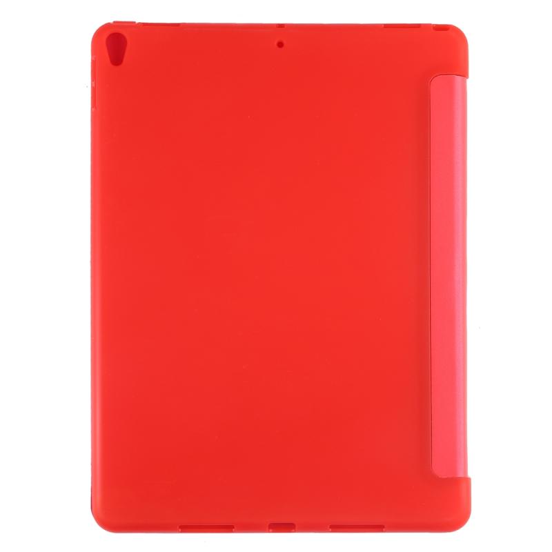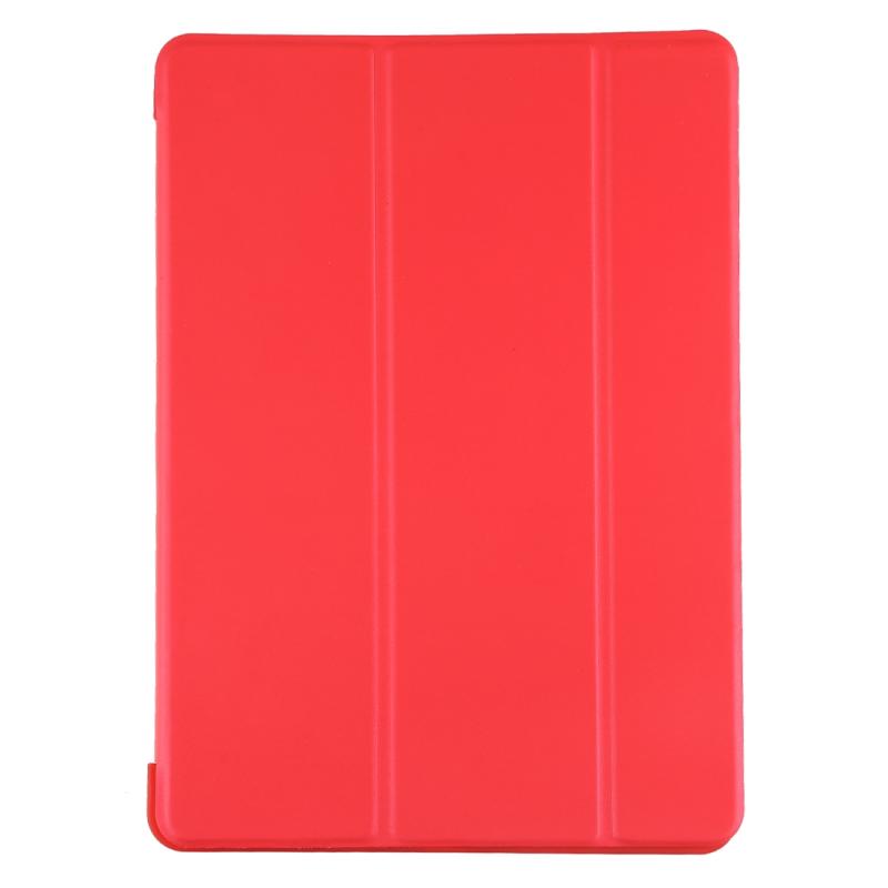 PU Plastic Bottom Case Foldable Deformation Left and Right Flip Leather Case with Three Fold Bracket & Smart Sleep for iPad Air3 2019(Red)