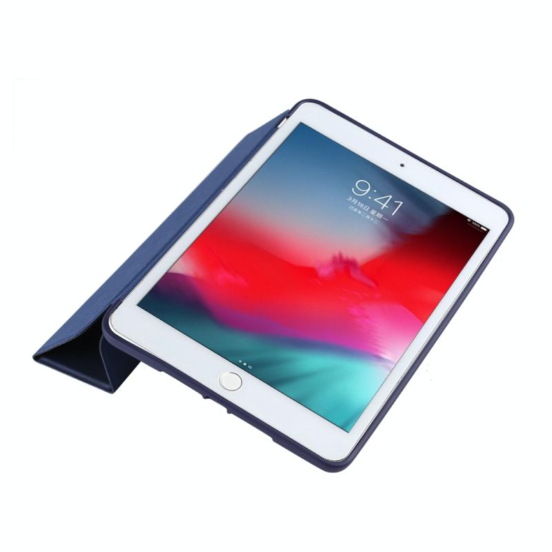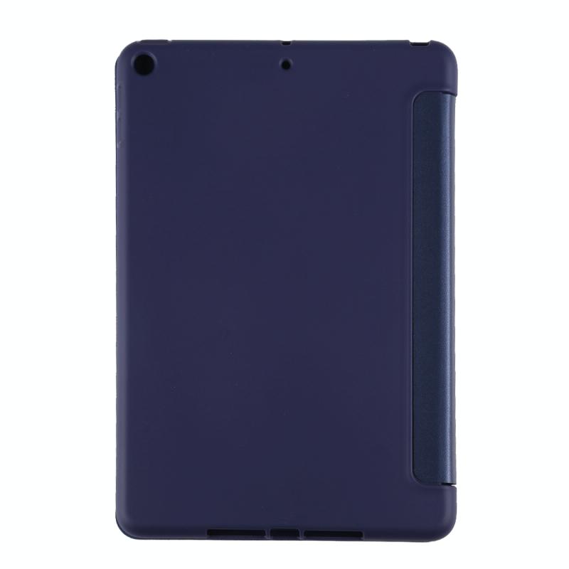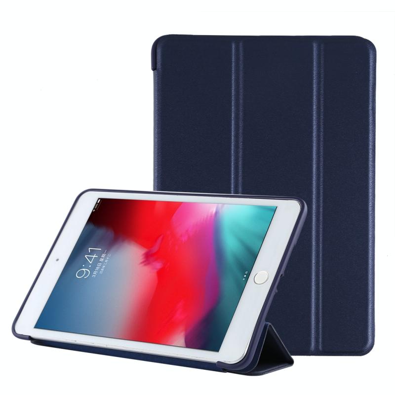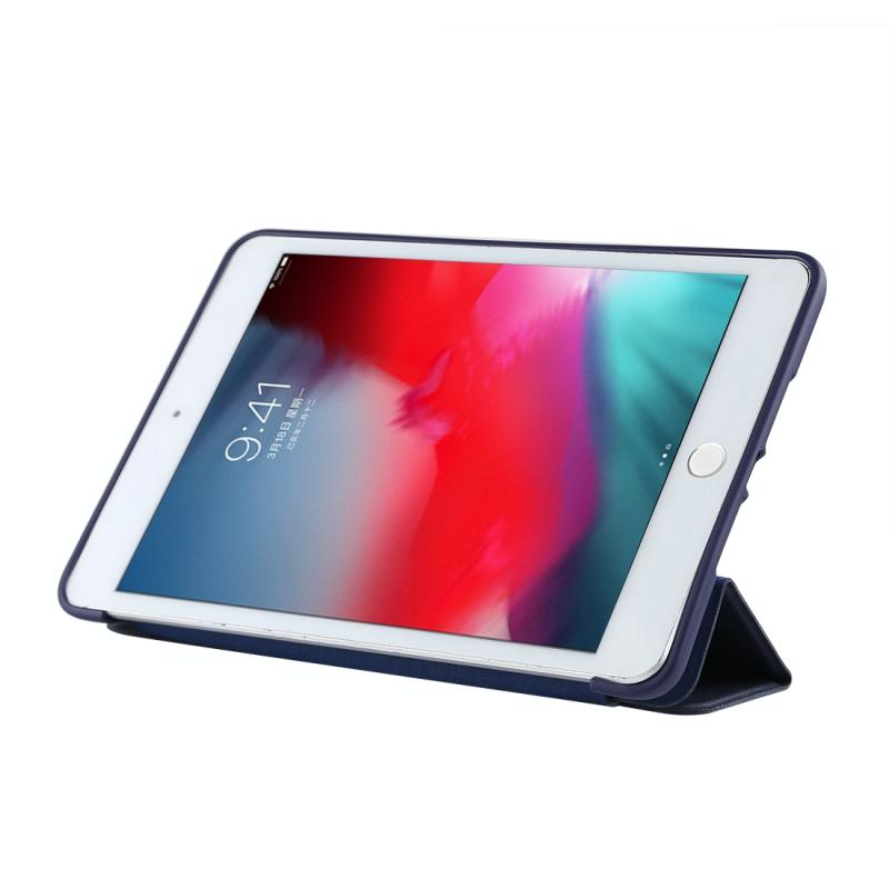 PU Plastic Bottom Case Foldable Deformation Left and Right Flip Leather Case with Three Fold Bracket & Smart Sleep for iPad mini 2019 (Blue)