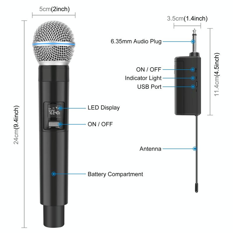 6. Receiver audio port: 6.35mm (with 6.35 to 3.5mm adapter)