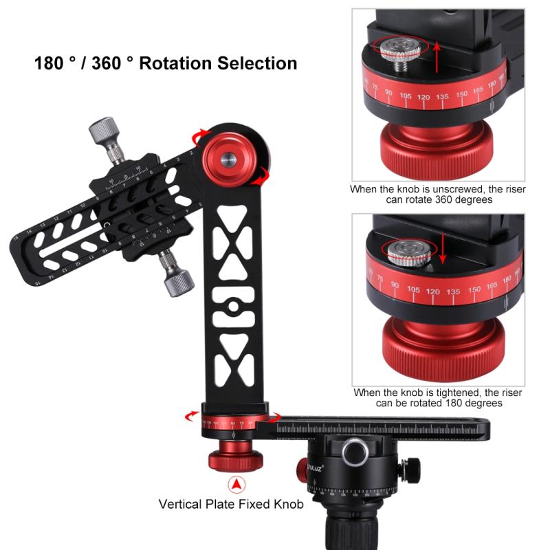 2. Panoramic bracket consists of three parts- two quick release plate with graduated disc and a fixed plate.the quick release system could be adjustable for 360 degree vertically by loosen the upper pivot bearing lock knob. And the bottom base can rotate