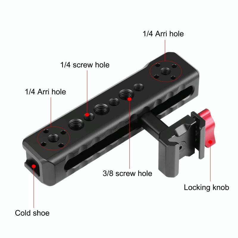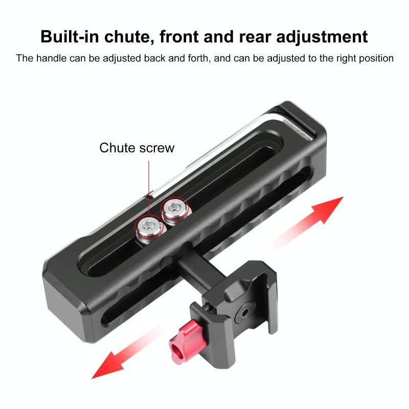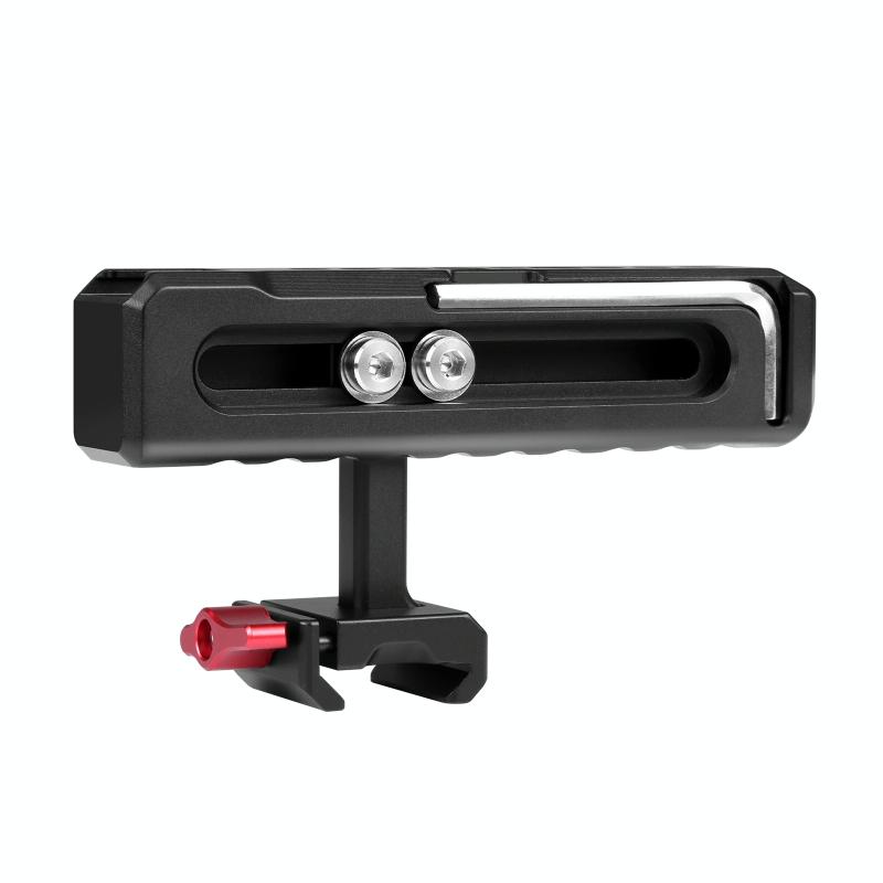 1. Handle grip: Sliding top cheese handle for moving shoots, compatibility with camera cages. It is designed for quick release attaching and detaching on the camera without screws.