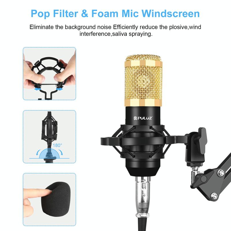 1. Professional recording studio equipment: Equipped with this microphone, shock mount, anti-wind foam cap
