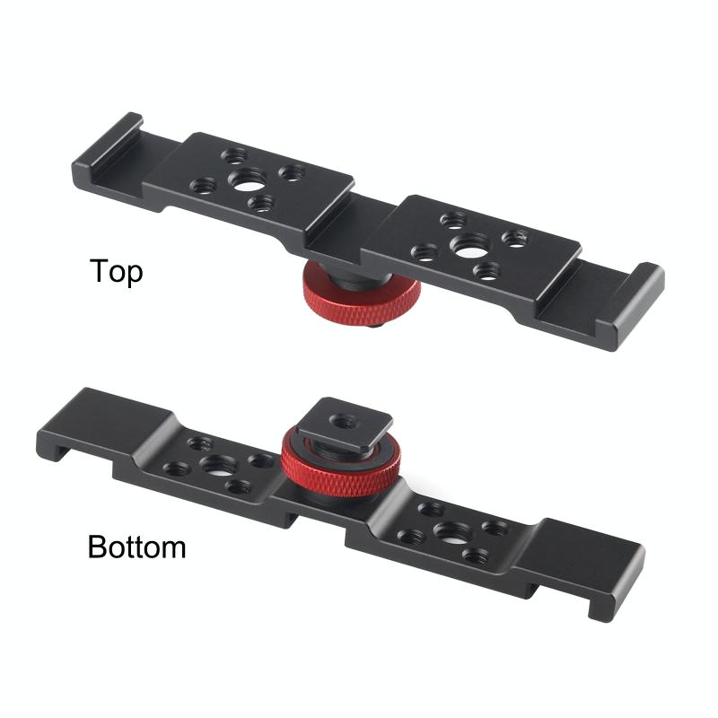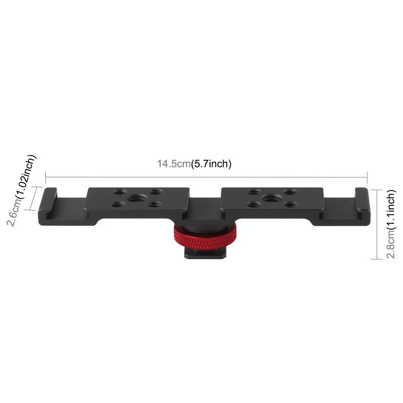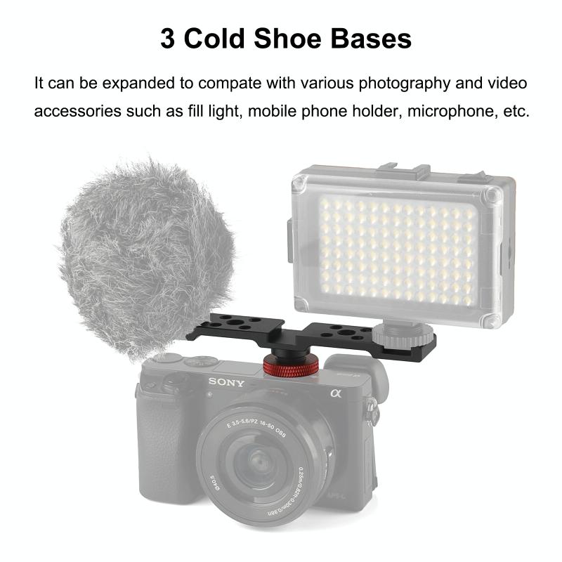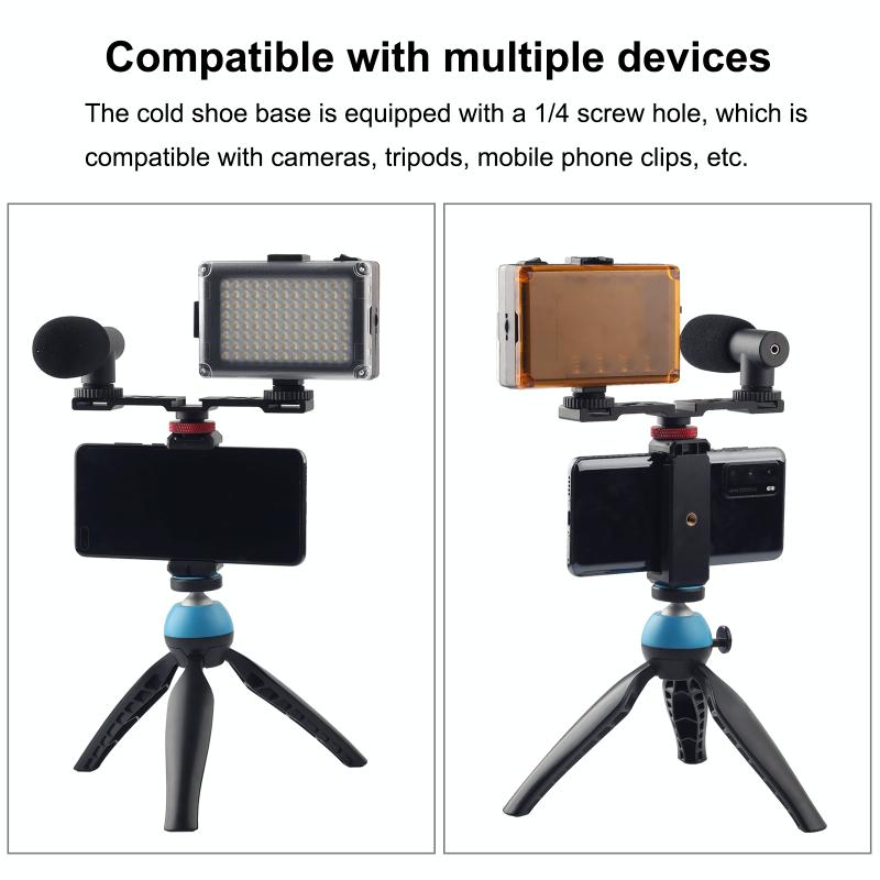 1. Three cold shoe mounts allow you to mount both LED light and mic at the same time.