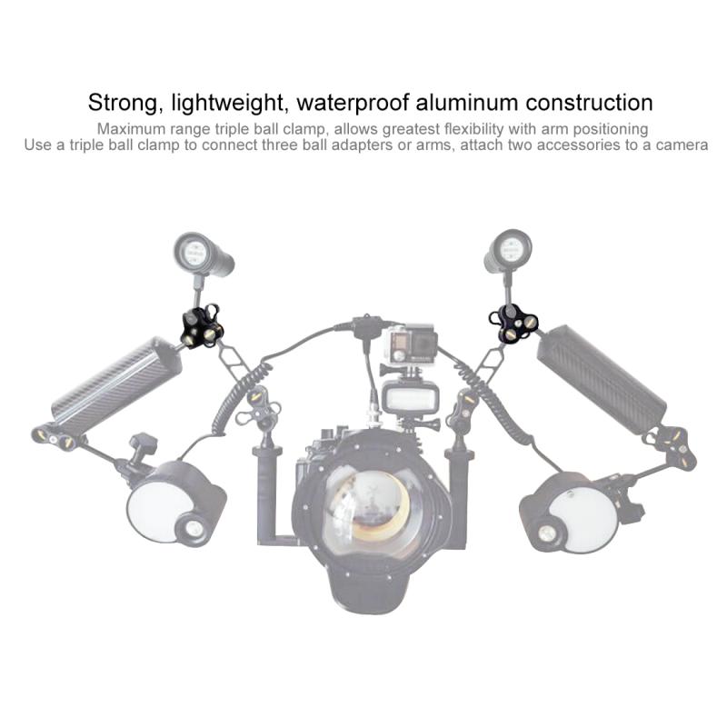 3. Use a triple ball clamp to connect three ball adapters or arms, attach two accessories to a camera