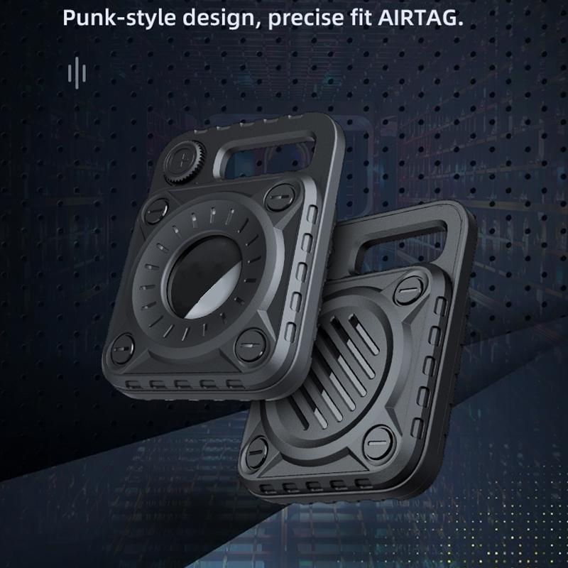 Punk Armor Anti-scratch Shockproof TPU Protective Cover Case with Keychain Hook Loop for AirTag(White)