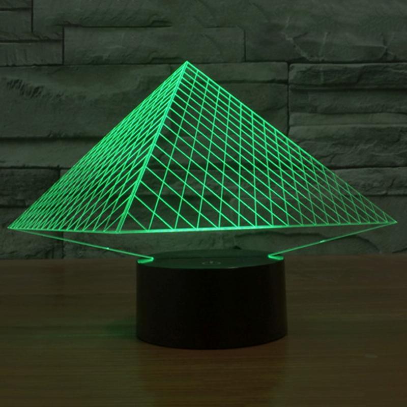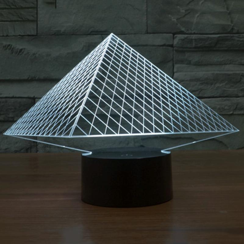 Pyramid Style 3D Touch Switch Control LED Light , 7 Colour Discoloration Creative Visual Stereo Lamp Desk Lamp Night Light