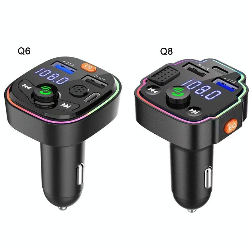 Q8 Car Bluetooth FM Transmitter Dual USB 3.1A Quick Charge Ambient Light
