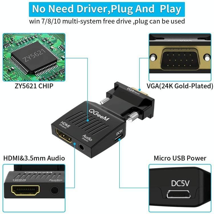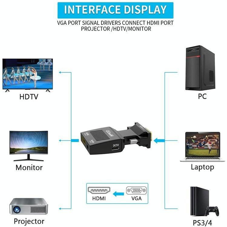 1. Advanced Signal Conversion - Effortlessly converts VGA (15-pin) analog signals to HDMI digital output, ideal for connecting legacy computers to modern HDMI-equipped HDTVs, projectors, and monitors with 1920×1080 60Hz resolution.