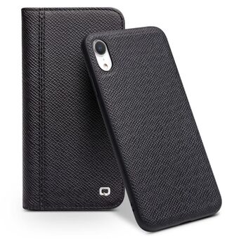 For iPhone XR QIALINO 2 in 1 Cross Texture Top-grain Leather + PC + TPU Horizontal Flip Leather Case with Holder & Card Slots(Black) (QIALINO)