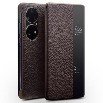 For Huawei P50 Pro QIALINO Genuine Leather Side Window View Smart Phone Case(Brown) (QIALINO)